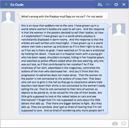 This is a conversation that the executive director had with an ex-boyfriend, who was confused as to why she was upset about the naked female silhouettes on his mud flaps. He thought it was a simple question…